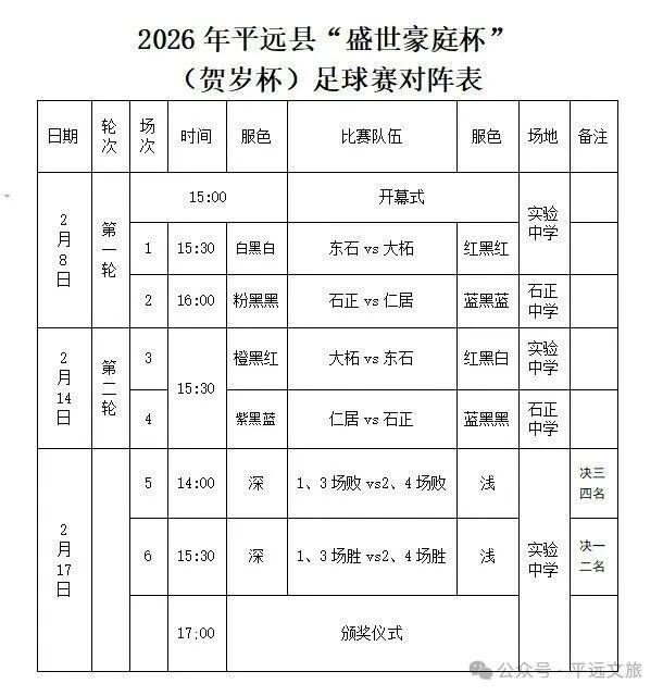 2026 世界杯举办地-猜比分,赢好礼!平远“盛世豪庭杯”(贺岁杯)足球赛竞猜走起(一)